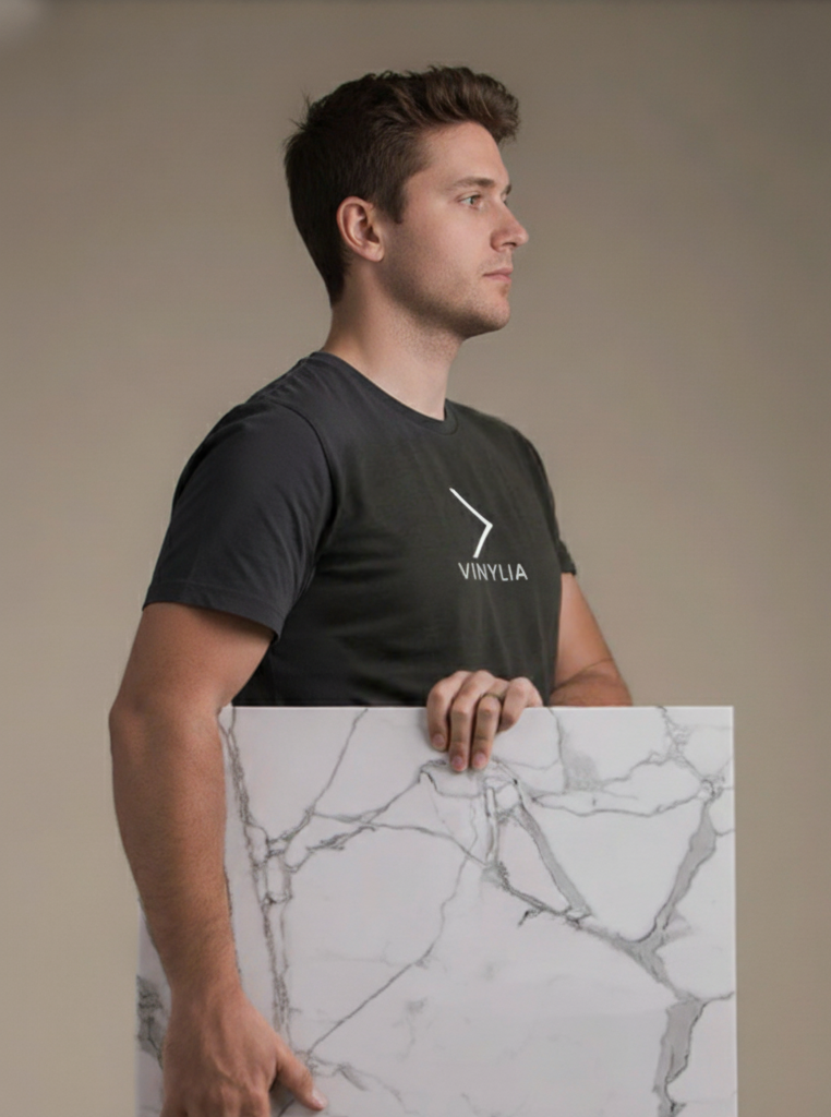 Not in the slightest. Our panels are crafted using advanced precision-cut technology to guarantee a flawless, near-invisible fit. When correctly installed, the seams are meticulously designed to vanish into the panel’s natural marble veining, effectively creating the stunning illusion of a single, continuous slab of luxury stone. The final result is a truly seamless, elegant finish that mimics the sophistication and fluidity of real marble.